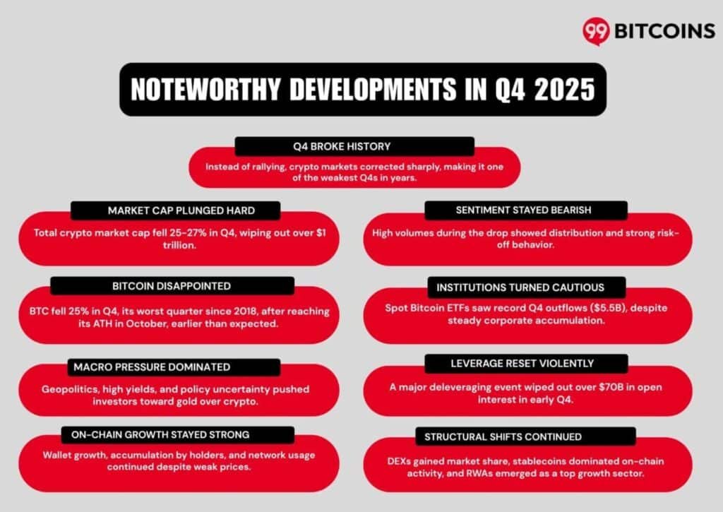 The put up Crypto’s “Finest Quarter” Didn’t Present Up: This autumn 2025 Wiped $1T As Bitcoin Slid And Establishments Cut up appeared first on 99Bitcoins.