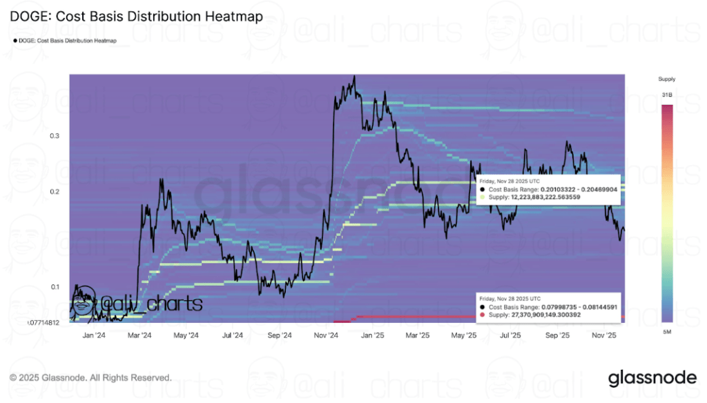 Dogecoin Key Value Ranges. Supply: @ali_charts On X