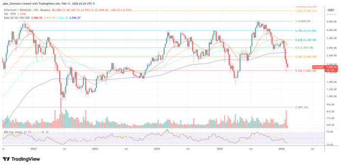 ETH ต่ำกว่า 2,000 ดอลลาร์ กราฟราย 1 สัปดาห์ | แหล่งที่มา: ETHUSDT บน TradingView.com