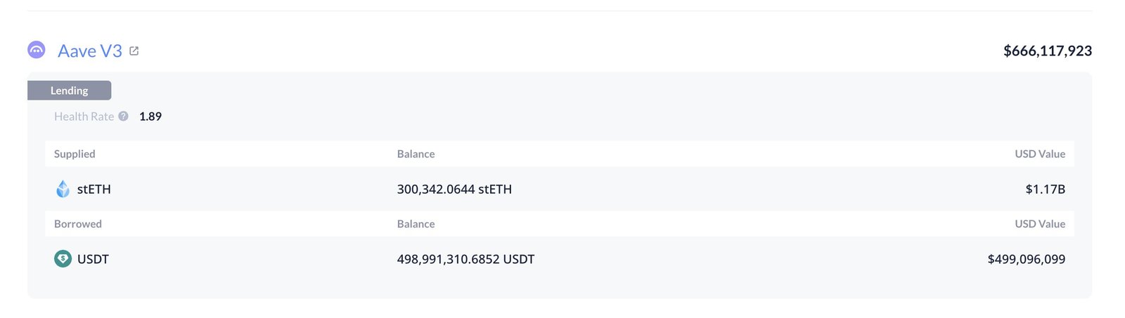 จากข้อมูลของ Lookonchain Ethereum OG คนเดียวกันกับที่เพิ่งโต้ตอบกับ ConcreteXYZ และ Steady ฝากไว้ 300,000 ETH ไปยัง Aave และยืมเงิน 500 ล้าน USDT จากยอดรวม 775 ล้าน USDT ที่ฝากไว้ในห้องนิรภัยใหม่ วาฬตัวเดียวนี้คิดเป็น 64.5% ของสภาพคล่องทั้งหมด ซึ่งตอกย้ำบทบาทที่โดดเด่นของพวกเขาในกิจกรรมทางการตลาดที่เกิดขึ้นอย่างกะทันหันนี้