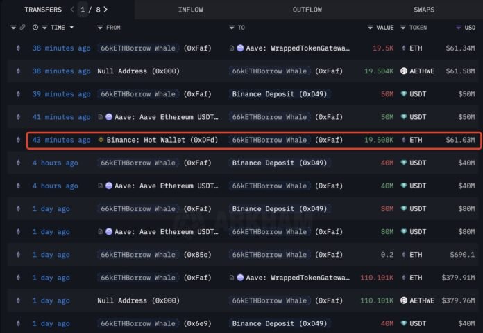ตาม ข้อมูล จาก Lookonchain นักลงทุน Ethereum ผู้โด่งดังที่รู้จักกันในชื่อ ปลาวาฬ ’66kETHBorrow’ ยังคงสะสมจำนวนมากต่อไปแม้ว่าตลาดจะตกต่ำอย่างต่อเนื่องก็ตาม ก่อนหน้านี้ Whale ได้ซื้อ ETH จำนวน 19,508 ETH มูลค่าประมาณ 61 ล้านดอลลาร์ ซึ่งเป็นการขยายตำแหน่งขนาดใหญ่ของเขาที่สร้างขึ้นในช่วงสัปดาห์ที่ผ่านมา