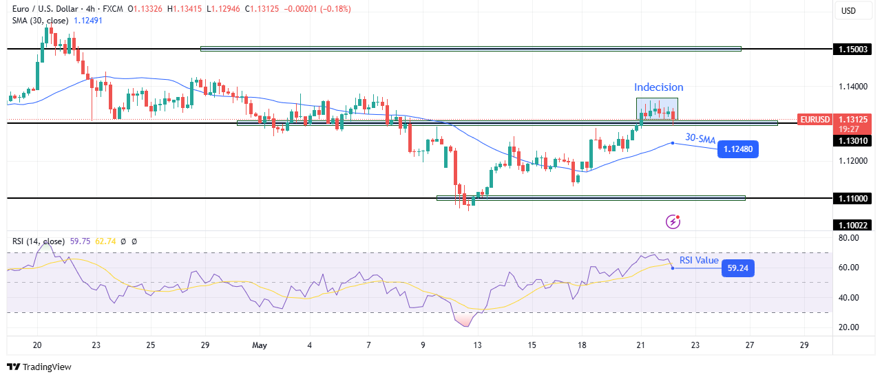 ในด้านเทคนิคราคา EUR/USD ได้หยุดการชุมนุมหลังจากผ่านระดับความต้านทานคีย์ 1.1301 ถึงกระนั้นมันก็ซื้อขายได้ดีกว่า SMA กับ RSI ที่สูงกว่า 50 ซึ่งสนับสนุนอคติรั้น