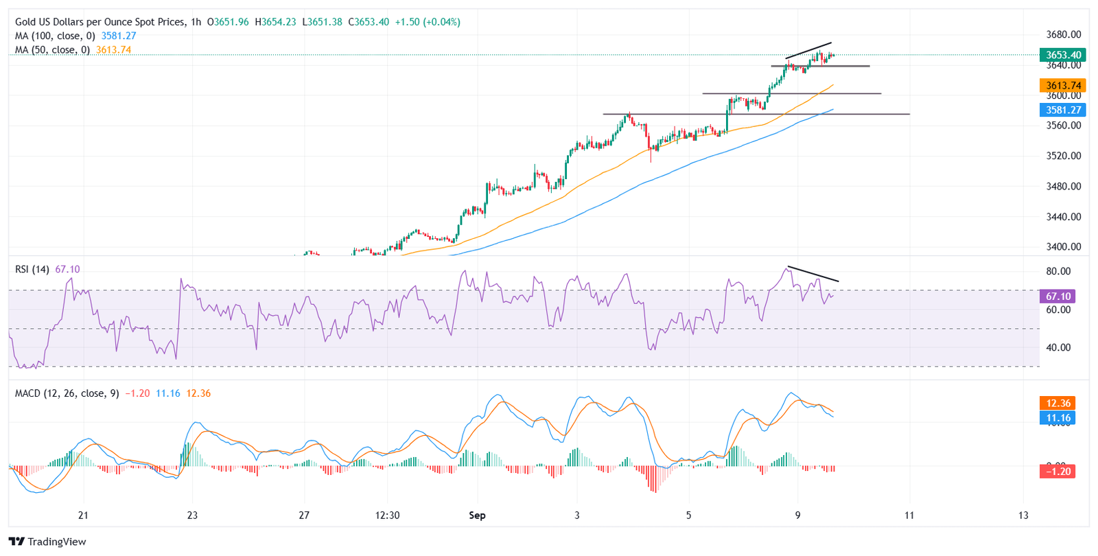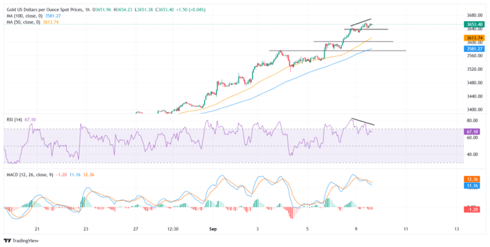 การวิเคราะห์ทางเทคนิค: XAU/USD รวมอยู่ใกล้กับ $ 3,650 เนื่องจาก RSI Divergence Flaves ข้อควรระวัง