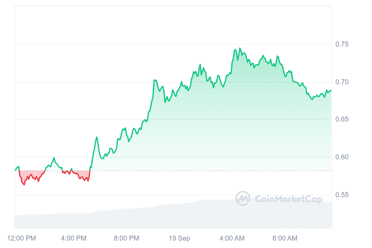 From a efficiency perspective, ZetaChain’s token, ZETA, has skilled notable value motion. As of the most recent knowledge, the token’s worth elevated by 18.21% over the past 24 hours, reaching $0.6881. This rise got here with a major improve in buying and selling quantity, which grew by 102.67%. Previous to this surge, the worth consolidated round $0.55, indicating robust momentum main as much as the breakout.