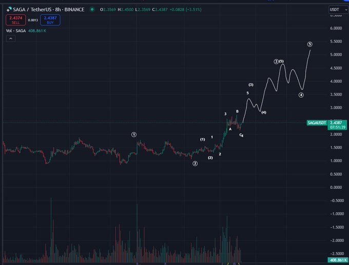 Based mostly on a chart by the pseudonymous analyst who often applies the Elliott Wave concept in his technical evaluation, SAGA has accomplished a minor three-wave sample on the eight-hour time-frame and is now within the technique of finishing a serious five-wave sample that would see its value double. Based on the Elliott Wave concept, the primary development of the value of an asset happens in a five-wave sample whereas a correction takes place in a three-wave sample.