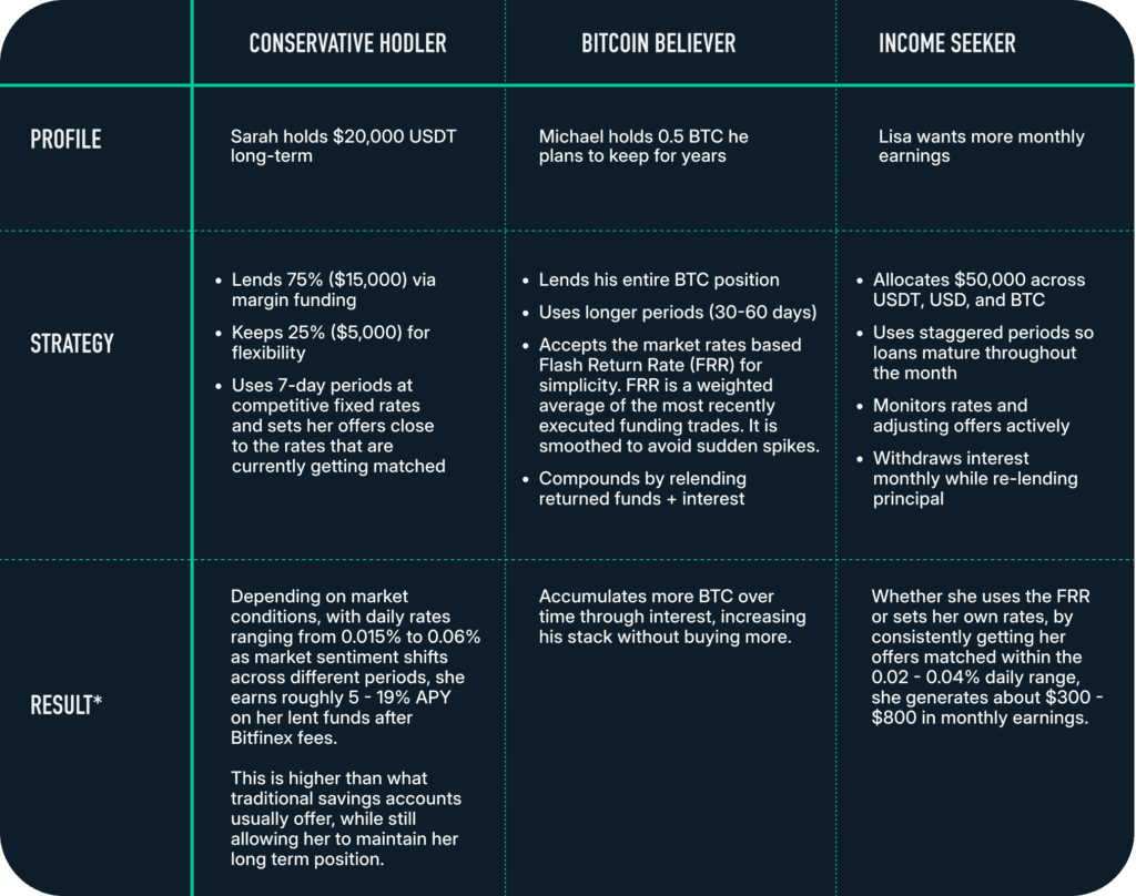 In easy phrases: you lend to different merchants who want leverage for his or her positions. You earn whereas preserving possession of your crypto.