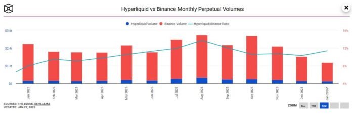 Hyperliquid vs Binance Monthly Perpetual VolumesHyperliquid vs Binance Monthly Perpetual Volumes