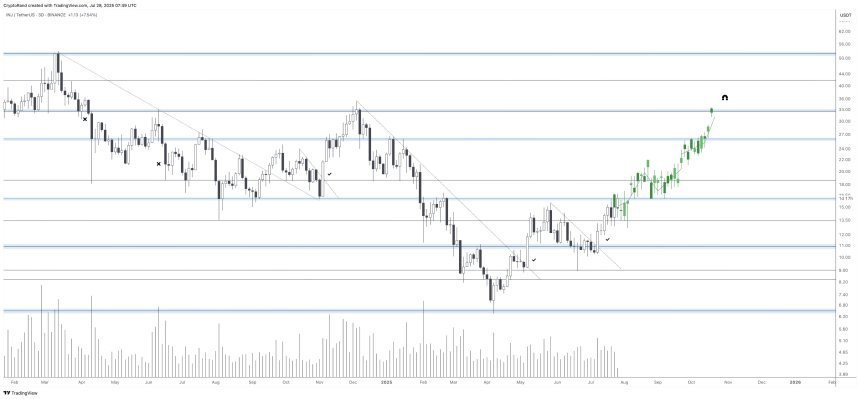 INJ eyes $30 resistance. Supply: Crypto Rand on X