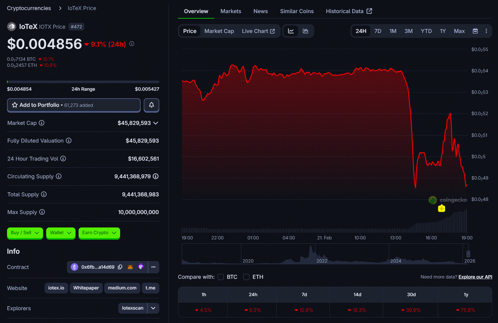 — IoTeX (@iotex_io) 21 กุมภาพันธ์ 2569
