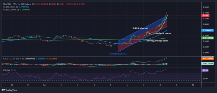 The Cardano worth has soared 18% within the final 24 hours to commerce at $0.4305 as of three:20 a.m. EST on a 100% pump in buying and selling quantity to $1.2 billion.