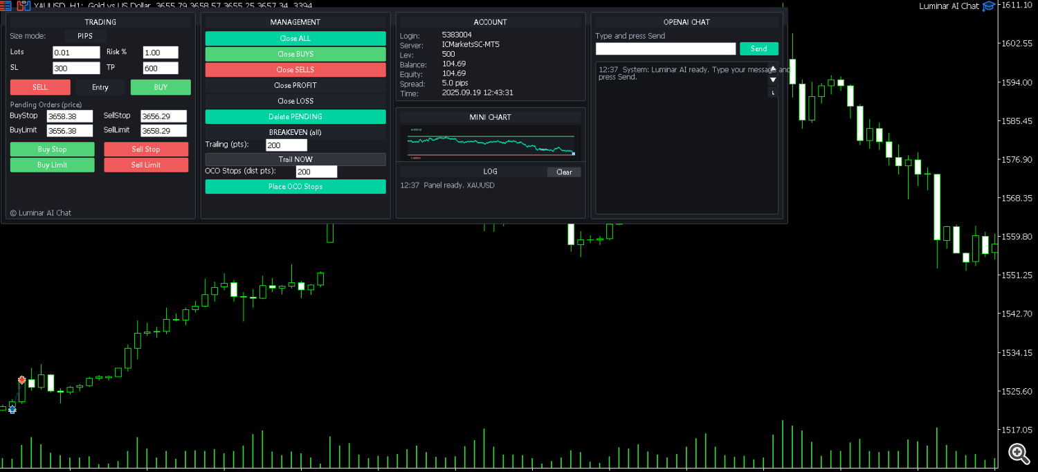 Luminar AI Chat ไม่ได้เป็นเพียงที่ปรึกษาผู้เชี่ยวชาญอีกคนหนึ่ง มันเป็น สหายการค้าแบบโต้ตอบ -การรวมการดำเนินการการจัดการความเสี่ยงและการสนทนาแบบเรียลไทม์