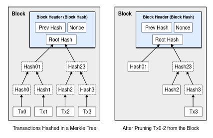 As soon as the most recent transaction in a coin is buried beneath sufficient blocks, the spent transactions earlier than it may be discarded to save lots of disk area. To facilitate this with out breaking the block’s hash, transactions are hashed in a Merkle Tree [7][2][5], with solely the basis included within the block’s hash. Previous blocks can then be compacted by stubbing off branches of the tree. The inside hashes don’t have to be saved.