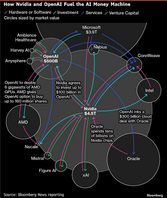 ทั้งคำแถลงดั้งเดิมและการชี้แจงของเธอทำให้ชัดเจนว่า OpenAI แม้ว่าพวกเขาจะพยายามระดมทุนจำนวนมหาศาลสำเร็จไปแล้ว แต่ก็ยังต้องการเงินทุนมากกว่านี้มาก OpenAI แสวงหาแหล่งข้อมูลเพิ่มเติมเพื่อรักษาบทบาทความเป็นผู้นำในด้าน AI กราฟด้านล่างแสดงให้เห็นว่า OpenAI และอุตสาหกรรมอื่นๆ ระดมทุนด้วยตนเองเพื่อตอบสนองความต้องการของพวกเขาได้อย่างไร เมื่อเร็ว ๆ นี้และมีรายละเอียดเพิ่มเติมในความเห็นนี้ การเสนอขายพันธบัตรมูลค่า 30 พันล้านดอลลาร์โดย Meta และข้อตกลงมูลค่า 25 พันล้านดอลลาร์โดย Google ชี้ให้เห็นถึงความเป็นไปได้ที่รายได้และกระแสเงินสดจากผู้เล่นในอุตสาหกรรมไม่เพียงพอที่จะครอบคลุมต้นทุนการพัฒนา AI อีกต่อไป
