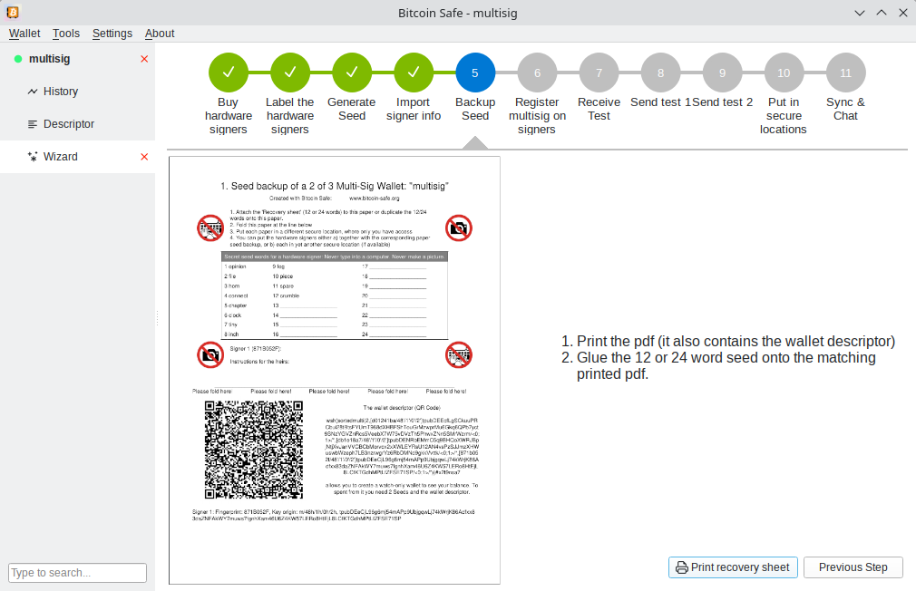 ตัวช่วยสร้างการตั้งค่า multisig ของกระเป๋าเงินสร้าง PDFs พร้อมตัวอธิบายกระเป๋าเงินรวมถึงการส่งและรับการทดสอบสำหรับการตรวจสอบ “ หลังจากที่คุณทำกับพ่อมดนี้เสร็จแล้วคุณสามารถมั่นใจได้ว่ามันตั้งค่าไว้อย่างถูกต้อง” กริฟฟินกล่าว สิ่งนี้ทำให้มั่นใจได้ว่าการกำหนดค่าที่เชื่อถือได้ทำให้สามารถเข้าถึงได้หลายแบบโดยไม่ลดทอนความปลอดภัย