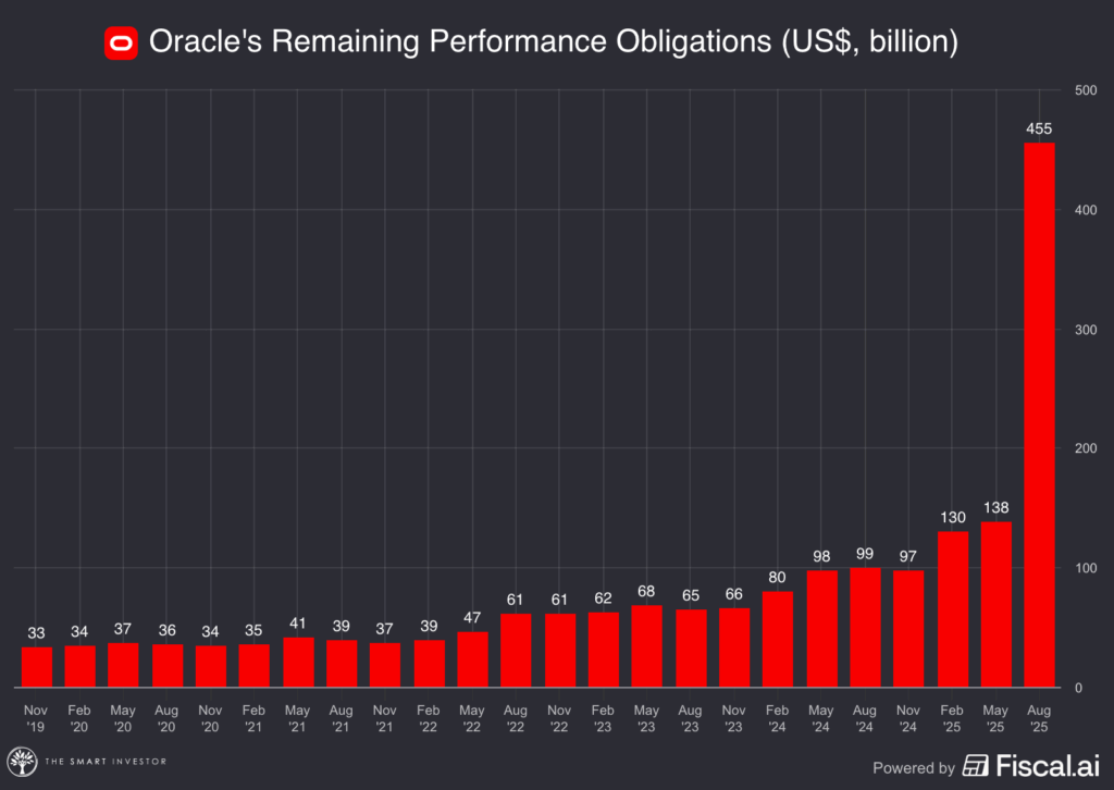 อะไรที่ทำให้เกิดความสบายใจนี้? ออราเคิลรายงานว่ามีภาระผูกพันในการปฏิบัติงานที่เหลืออยู่ 317 พันล้านเหรียญสหรัฐซึ่งเป็นรายได้ตามสัญญาในอนาคต จำนวนนั้นเป็นสิ่งที่น่าดึงดูดใจซึ่งเป็นตัวแทนของธุรกิจที่มุ่งมั่นที่ Oracle จะรับรู้ในอีกไม่กี่ปีข้างหน้า ความน่าเบื่อหน่ายเป็นอย่างไร? ลองดู