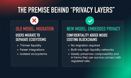 That is the premise behind so-called “privateness layers”: as an alternative of asking customers emigrate to separate ecosystems with thinner liquidity and fewer integrations, the aim turns into including confidentiality inside present networks — ideally with out breaking composability and in types that may survive contact with regulated rails.