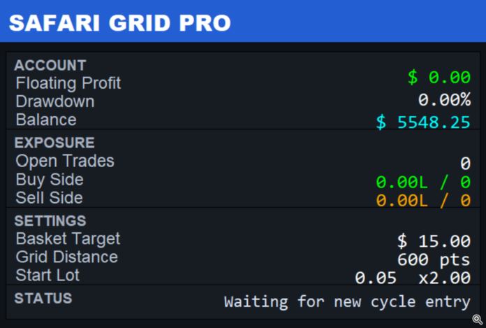 Safari Grid Professional – การซื้อขายกริดระดับมืออาชีพด้วยอินเทอร์เฟซ MT5 ที่สะอาดตา