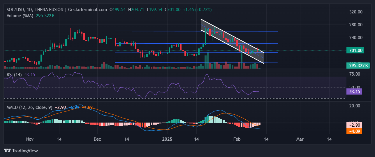The Solana value is trying to interrupt out above a medium-term descending channel that has shaped on its charts within the final couple of weeks, GeckoTerminal information reveals. Ought to the crypto rise above the higher boundary of this detrimental vary, it’d attempt to flip the resistance at $223.34 earlier than doubtlessly hovering to the resistance at $260.22.