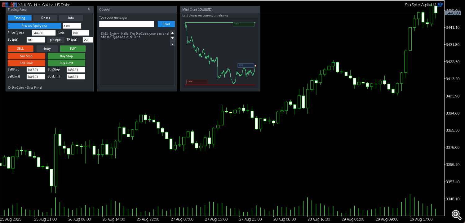 Starspire Capital AI ไม่ได้เป็นเพียง Gold Gold EA มันเป็นแพลตฟอร์มการซื้อขายภายในแผนภูมิของคุณ – สร้างขึ้นสำหรับผู้ค้าที่ต้องการความชัดเจนความเร็วและคำตอบ