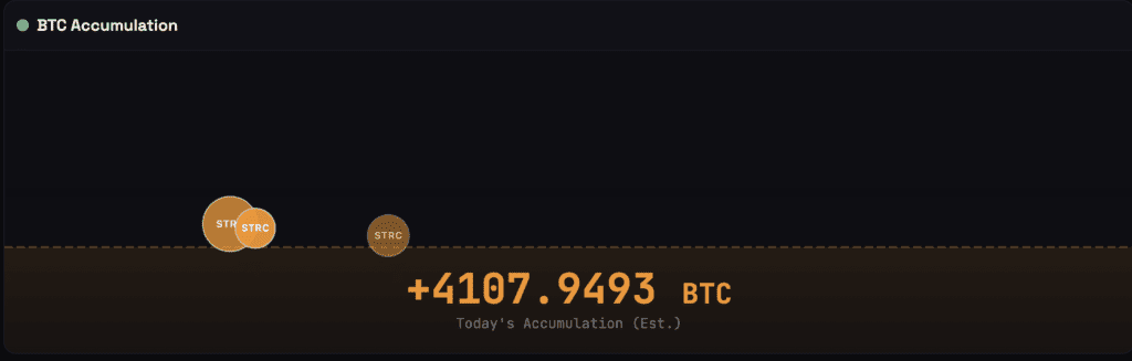 ในตอนท้ายของวันในนิวยอร์ก กิจกรรมการซื้อขายบ่งบอกเป็นนัยว่าบริษัทได้ระดมทุนเพียงพอแล้วเพื่อรับมากกว่า 4,000 BTC ซึ่งถือเป็นการซื้อ bitcoin ที่ใหญ่ที่สุดในวันเดียวที่ได้รับทุนผ่าน STRC นับตั้งแต่เปิดตัวตราสาร