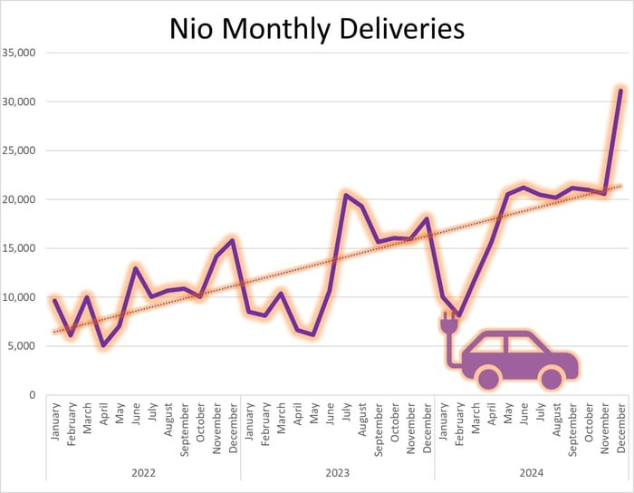Additional, December gross sales gave buyers a sneak peek on the subsequent section of development that can embody its Onvo model, which simply started logging deliveries. And do not forget it simply launched its third model, Firefly, in late December, which can even add incremental gross sales in 2025.