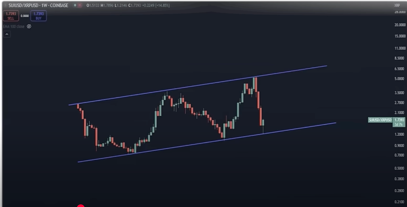 In a brand new technique session, Pal takes a have a look at Sui towards XRP (SUI/XRP) and means that the buying and selling pair is in a long-term ascending channel and has already touched the underside vary, implying {that a} transfer to the higher stage is now in play.