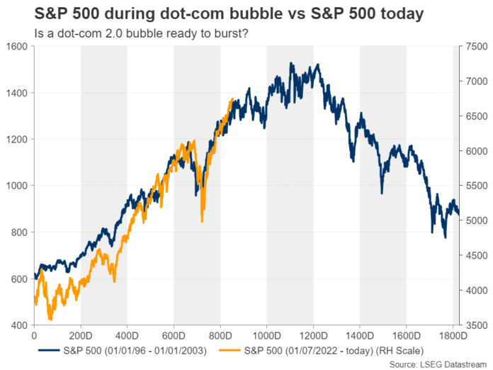 หากไม่มีหลักฐานที่เป็นรูปธรรมว่าการลงทุนมหาศาลดังกล่าวสามารถแปลงเป็นผลกำไรมหาศาล มีนักวิเคราะห์หลายรายที่กังวลเกี่ยวกับฟองสบู่สไตล์ดอทคอม ย้อนกลับไปในช่วงปลายยุค 90 มีแนวโน้มของข้อตกลงแบบวงกลมระหว่างสตาร์ทอัพ โดยบริษัทต่างๆ ซื้อบริการของกันและกันเพื่อเพิ่มการเติบโตที่สังเกตได้ ตอนนี้ยักษ์ใหญ่ด้าน AI กำลังใช้จ่ายมากกว่าสตาร์ทอัพในตอนนั้น แต่การลงทุนครั้งนี้ไม่ได้เกิดจากหนี้สิน ผู้เล่นเทคโนโลยีรายใหญ่มีงบดุลและกระแสเงินสดจำนวนมาก