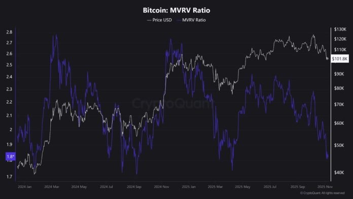 Market analyst Crypto Crib famous that BTC’s Market Worth to Realized Worth (MVRV) ratio has risen to about 1.8. In previous cycles, comparable readings got here earlier than rebounds of roughly 30%–50%.