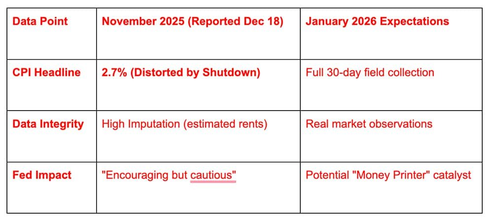 However this report comes with an asterisk. Due to a six-week authorities shutdown, the US by no means printed October CPI and statisticians needed to estimate chunks of November information as an alternative of utilizing actual value observations.