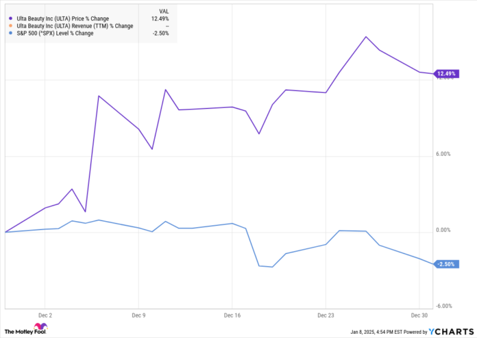 Shares of Ulta Magnificence (ULTA -3.07%) have been climbing greater final month after the wonder superstore chain posted better-than-expected ends in its third-quarter earnings report, displaying enchancment on the underside line, and that the worst of its market-share losses appeared to be behind it.