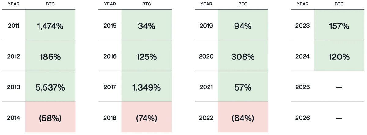 If historical past have been to repeat itself, Bitcoin would proceed its ascent by means of 2025 earlier than going through a big pullback in 2026. Nevertheless, Hougan suggests this time could also be totally different. Whereas he acknowledges the chance of speculative extra and leverage-driven bubbles, he argues that the sheer scale of institutional adoption will forestall the type of extended bear markets seen up to now.