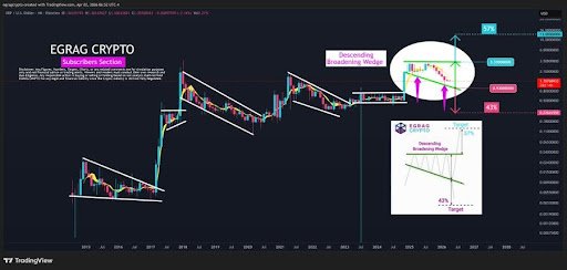 In an XRP replace, EGRAG CRYPTO emphasised that the market is approaching a crucial second, describing the present setup as an “elastic coil” nearing its breaking level. The broader construction is outlined by a descending broadening wedge, a formation usually related to highly effective growth phases quite than weak spot.