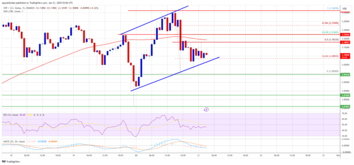 If XRP fails to clear the $3.20 resistance zone, it might begin one other decline. Preliminary help on the draw back is close to the $3.0650 degree. The following main help is close to the $3.00 degree.